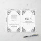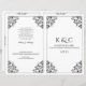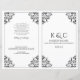 Foldover do Programa Nadine Wedding (Preto): Deixe seus convidados seguirem sua ordem de serviço de casamento com esta modelo de casamento de cantos antigos em ouro. Estas serão desdobradas (sem dobras). A cor design é definida em um preto rico, mas você pode mudar a cor do design alterando a cor de fundo. **HOW TO CHANGE YOUR DESIGN COLOR** 1) Clique no botão "Personalizar". 2) Clique no link "ClICK TO CUSTOMIZE FAIORE" (ClICK PARA PERSONALIZAR MAIS) na parte inferior. Então você terá a opção de mudar sua "COR DE FUNDO" para sua cor de casamento. Não se esqueça de mudar a cor do texto para corresponder ao seu design.