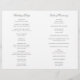 Programa de Casamento dobrado ao estilo clássico com palavras de sotaque em uma tipografia de caligrafia elegante. A frente tem seus detalhes de eventos, a dentro tem sua festa de casamento e ordem de cerimônia. O verso tem um modelo para a sua mensagem / aspas. Todo o texto está em cinzas médias sobre um fundo branco e pode ser alterado para qualquer cor desejada clicando no botão "personalizar". Estes Programas de Casamento são perfeitos para um casamento formal.