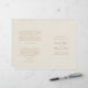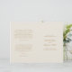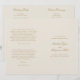 Programa de Casamento dobrado ao estilo clássico com palavras de sotaque em uma tipografia de caligrafia elegante. A frente tem seus detalhes de eventos, a dentro tem sua festa de casamento e ordem de cerimônia. O verso tem um modelo para a sua mensagem / aspas. Todo o texto está em dourado falso sobre um fundo de marfim neutro e pode ser alterado para qualquer cor desejada clicando no botão "personalizar". Estes Programas de Casamento são perfeitos para um casamento formal.