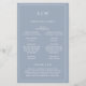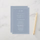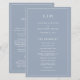 Programa de Casamento Simples com um design moderno, mas elegante, com seu monograma de duas letras no topo e seus detalhes cercados por uma fina fronteira. Todo texto está em branco sobre um fundo azul empoeirado e pode ser alterado na ferramenta de edição de design. A frente tem sua ordem de cerimônia e a parte de trás tem sua festa de casamento e obrigado. Um design chic e na moda que é excelente para um casal minimalista. Estes programas de casamento baratos são impressos em folhas de papel para uma opção econômica.