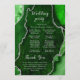 Conduza seus convidados através da sua cerimônia com este elegante programa de casamento com um design de mármore de ágata verde acentuado com detalhes prateados. O fundo inspirado em geodo cria um visual sofisticado, perfeito para casamentos de outono e inverno, celebrações formais ou eventos noturnos. Projetado para coordenar com o conjunto de papelaria do seu casamento, este programa é ideal para delinear a ordem do serviço, a festa de casamento e os momentos especiais do seu dia em um formato claro e elegante. A tipografia limpa garante legibilidade, ao mesmo tempo que complementa a textura da ágata. Personalize facilmente todo o texto para se adequar aos detalhes da sua cerimônia e crie uma experiência perfeita e sofisticada para os seus convidados.
