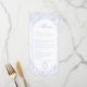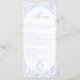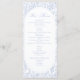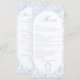 Este menu de casamento floral em azul Delft suave é projetado em uma mistura refinada de estilo chinoiserie e toile de Jouy francês. Ilustrações botânicas delicadas enquadram um layout de arco oval elegante, criando uma apresentação atemporal e romântica. O menu inclui espaço para três pratos na frente e um menu de bar completo no verso, tornando-o bonito e prático para o seu dia especial.