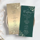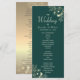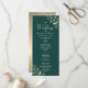 Entre num mundo de charme atemporal e sofisticação com o nosso programa de cerimônia de casamento luxuoso e elegante em esmeralda verde. Infundido com charme boêmio e apelo vintage, delicadas flores douradas e caligrafia graciosa adornam cada detalhe, prometendo um dia de encantamento e beleza.