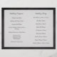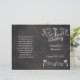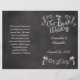 Use este programa dobrável (não pré-dobrado) para criar um programa impresso dos eventos do dia do casamento. Impressão de alta qualidade. Celebre núpcias na costa com esta palmeira com um esboço na lousa com aspecto branco no giz. Excelente de uma vintagem rústica em um casamento na praia. Design Copyright © CustomInvitesOnline.com