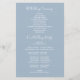 Programa de casamento em script de assinatura azul empoeirado com tipografia moderna e elegante, este programa de casamento elegante pode ser personalizado com as informações do seu dia especial de casamento. Concebido por Thisisnotme©