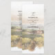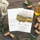 Celebre sua cerimônia com este elegante programa de casamento de vinhedo toscano, inspirado nas paisagens românticas do campo italiano. Com uma suave ilustração em aquarela de vinhedos ondulantes e uma encantadora villa toscana, este programa reflete lindamente a atmosfera de um casamento em um vinhedo.