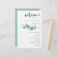 Programa de Casamento Eucalyptus minimalista, tamanho 5,5" x 8,5" a um preço orçamentário, em uma elegante ação LINEN de 110 lb - para um sentimento de luxo pelo valor do excelente, isso é perfeito para programas, assim como convites e menus, etc. Este alternativo de tamanho de orçamento também está disponível em outras opções de papel. O estoque do cartão SEMI-GLOSS de 110 lb tem aproximadamente a mesma espessura do cartão postal, portanto também funciona bem para convites. O papel FELT de 100 lbs é colorido por buff, NÃO branco, então adiciona um toque rústico. O estoque de papel MATTE de 80 lb é branco brilhante, para impressão nítida, excelente para seus menus e programas, enquanto o papel SATIN de 80 lb é fino e leve, ideal para gabinetes. NOTE QUE OS ENVELOPES OPCIONAIS SÃO UM POUCO MAIORES EM TAMANHO A 6,75" x 9" aprox. Este design elegante tem um solteiro de folhas de eucalipto azuis lacrimejantes do médio direito para baixo com tipografia elegante alinhada à direita em cada lado. Bem-vindo está em um script de estilo manual informal definido e o resto das palavras que você pode personalizar facilmente. Um plano de fundo de cores de coordenação está na parte de trás que você pode mudar para outra cor se preferir através da opção personalizar mais