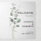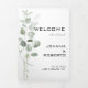 Este minimalista programa de casamento de eucalipto é perfeito para elogiar um casamento rústico. O design apresenta uma folhagem de eucalipto verde-aquarela.