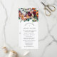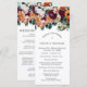 Vermelho borgonha, laranja-terracota, flores brancas e cor-de-rosa pinceladas criam a borda superior na frente e atrás deste programa de casamentos outono elegante. Bem-vindos e as duas categorias no verso (cerimônia e festa de casamento) são escritas em fontes modernas e tradicionais. A design aberta e arejada é melhorada pelo texto das cinzas suaves. Este programa de casamento coordena-se com a coleção de casamento da Celebração de outono.