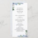 Um design verde e azul adorável com flores azuis e folhagem verde. Você pode personalizar o texto e as cores desta modelo do programa de casamento.