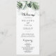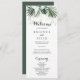 Este programa de casamento floral verde tropical é perfeito para um casamento de destino. A design apresenta palmeiras verdes folhas buquês com flores brancas adoráveis.