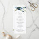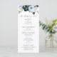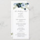 Um tema boêmico com marinho de aquarela e flores azuis-claras. Você pode personalizar o texto e as cores deste programa de casamento.