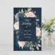Programa de casamento floral cor-de-rosa azul-marinho escuro com buquê elegante de folhas de azul-marinho, azul-real, branco, rosa e verde-sábio. Entre em contato comigo para obter ajuda sobre a personalização ou se você precisar de outro produto com este design.