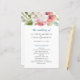 Este elegante programa de casamentos florais de aquarelas apresenta um belo design floral em tons de rosa, rosa e branco com sotaque teal e verde. Adicione seus detalhes da cerimônia de casamento na frente e seus nomes de festa de casamento nas costas. Um programa impressionante e na moda para o seu casamento!