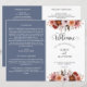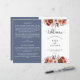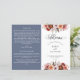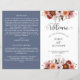 Este elegante programa de casamento apresenta uma bela fronteira floral no topo e no verso, com flores delicadas numa combinação de cor-de-rosa pincel, rosa poeirento, burgundy Marsala, cinzas e tons de pêssego. Utilização de detalhes caligráficos modernos. Dois lados em contraste com a elegante cor azul empoeirada de fundo. Personalize o programa em ambos os lados. NOTA: este programa chegará plano e requer o dobramento no meio para montagem. O programa de valor padrão é recomendado.