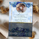 Pegue um programa de casamento único que você pode personalizar completamente para torná-lo especial e exclusivo para o seu casamento. o design vem com um quadro onde você pode colocar sua foto com seu homem ou com sua mulher, o quadro que vem com o miçanga complementará a foto do dentro casal e fará o cartão parecer tão elegante. Moderno e elegante brilho com flores azuis e sotaque dourado.