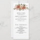 Amaze seus convidados com este elegante programa de casamento com lindas flores vermelhas de poinsettia e folhas de pínus rústicas.