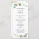 Um design floral com flores de pêssego e folhagem verde. Você pode personalizar o texto e as cores desta modelo do programa de casamento.