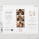 Torne o seu dia de casamento único com o nosso programa de triplicação de jardins florais. Este produto tem um elemento de cor - você mesmo terá que dobrá-lo em um estilo de brochura. Este programa tem um esquema de cor verde de pêssego, laranja queimada, rosa-pincel, creme e sage com uma vibração do jardim italiano. Inclui informações sobre a festa de casamento, fotos, a linha do tempo do evento, a ordem da cerimônia, recepção, memória amorosa e obrigados do casal.