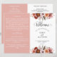 Este elegante programa de casamento apresenta uma bela fronteira floral no topo e no verso, com flores delicadas em uma combinação de rosa pincel, poeirento, burgundy e tons de pêssego. Utilização de detalhes caligráficos modernos. Dois lados em uma cor de fundo rosa pincelada romântica ligeiramente mais escura do que nosso convite para contrastar a cor da fonte de texto branca. Personalize o programa em ambos os lados. NOTA: este programa chegará plano e requer o dobramento no meio para montagem. O programa de valor padrão é recomendado.