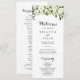Este programa de casamento floral branco verde é perfeito para um casamento rústico. O design apresenta elegantes pedras brancas de aquarela com folhagem verde.