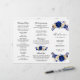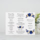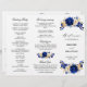 Elegante programa de casamento do tema ouro azul real com buquê elegante de azul real, Marinho, ouro, botões de flores de rosa amarelo e folhas de eucalipto. Entre em contato comigo para obter ajuda sobre a personalização ou se você precisar de outro produto com este design.