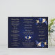 Elegante programa de casamento do tema ouro azul real com buquê elegante de azul real, Marinho, ouro, botões de flores de rosa amarelo e folhas de eucalipto. Entre em contato comigo para obter ajuda sobre a personalização ou se você precisar de outro produto com este design.