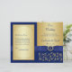 Programa de Casamento Floral Dourado, Azul Monogra