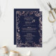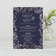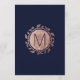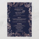 Rosa de ouro elegante, moderno e chic, e padrão de desenho floral azul de marinho azul de tendências, cartões de programa de casamento. Este design clássico e sofisticado é perfeito para o casal de competição de tendências e na moda. Personalize com sua própria mensagem na frente, assim como um monograma personalizado inicial no verso. Todas as impressão de fotos.