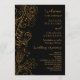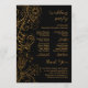 Esse elegante programa de casamento apresenta um delicado design floral ornamental com flores, pássaros e folhas sobre fundo preto e ouro. O texto combina o script manuscrito e as fontes serif para uma aparência na moda e moderna. Perfeito para um casamento outono de inverno ou outono.