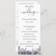 Flores em aquarela roxa e ramos botânicos verdes, programa de casamento. O programa apresenta um acento de caligrafia "casamento" fofo com várias linhas para listas de texto personalizadas para a ordem dos eventos da cerimônia, festa de casamento e nota de agradecimento.