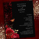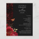Programa de Casamento Floral Negro e Vermelho Gótico. Folhas de folha de ouro falsas. A fonte do script é realçada com a fonte de nome de serif de leitura fácil. Fácil de ajustar para as suas necessidades de casamento.