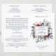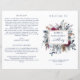Esta elegante design de cerimônia de casamento apresenta um buquê floral cativante no centro, que inclui o quadro de ouro rosa com noiva e nomes de noivo. Folhagem e flores em azul poeirento, azul marinho, branco, magenta-roxo, pincel, sábio, cinza e tons de caramelo. Uso de tipografia escrita à mão. Personalizar a formulação de ambos os lados. NOTA: esses programas chegam achatados e exigem o dobramento do meio para montagem. O valor padrão do papel é recomendado. Parte de nossa coleção "Celestial Blooms" com vários produtos de coordenação disponíveis.