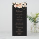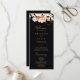 Este programa de casamento floral real e formal preto é perfeito para um casamento moderno. A design apresenta cor-de-água rosa, pincel e flores brancas elegantes com folhas esmeraldas verdes.