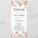 Este Cartão de Programa de Casamento Romântico Rosa Desabrochado apresenta flores pintadas à aquarela em rosa e branco, folhagem verde-oliva com letras manuscritas. Para personalização avançada deste design, clique no botão "Personalizar". Itens correspondentes também estão disponíveis.