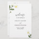 Elegante programa de casamento floral com um layout simples que apresenta margaridas brancas pintadas por aquarela no canto superior esquerdo e canto inferior direito, juntamente com "bem-vindo" em um bonito roteiro escrito à mão. As costas têm a sua ordem de cerimônia, festa de casamento e obrigado. Este moderno programa de casamento com flores margaridas é excelente para um casamento de primavera ou verão.
