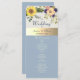 Boêmia, rústica, elegante, botânica, com um programa de casamento azul empoeirado, com girassóis e verde.