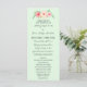 Programa de casamento personalizado em flores silvestres cor-de-água rosa-pincelada-rosa-pincelada com fundo de menta. Personalize esta ordem de cartões de cerimônia com o seu próprio texto.