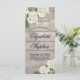 Modelos de Cartões de Rack do Programa Casamento - Flores de Hydrangea Hydrangea, adoráveis aquarelas brancas Elegantes, e Luzes de Cordas no Fundo Russo de Madeira. Um Design Perfeito Para O Seu Grande Dia! Todo Estilo De Texto, Cores, Tamanhos Podem Ser Modificados Para Ajustado Das Suas Necessidades.