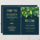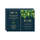 Design de casamento criativo com folhagem abundante desenhada à mão de uma forma moderna imitando textura metálica. Sombras de verde, ouro, cobre, platina, turquesa, azul escuro. Fundo azul profundo Dourada inscrição (ouro não é ouro real, mas cor). Fontes modernas simplificadas. Realmente único, envolvente e elegante. Para casamento outono, casamento de verão, casamento de jardim, ou qualquer tipo de casamento elegante moderno.