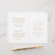 Programa de casamento dobrado em ouro legante (impresso em papel de médio porte e desdobrado) com um design simples e mínimo com os nomes da noiva e do noivo em uma fonte serif tradicional e o meio e sobrenomes em uma escrita elegante de caligrafia. Um estilo clássico que é perfeito para um casamento formal.