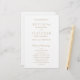 Elegante programa de casamento em ouro falso com um design simples e minimalista com os nomes da noiva e do noivo em uma fonte serifada tradicional e os sobrenomes em uma caligrafia elegante. Um estilo clássico que é perfeito para um casamento formal.