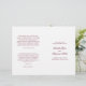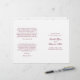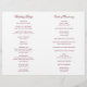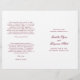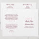 Programa de Casamento dobrado ao estilo clássico com palavras de sotaque em uma tipografia de caligrafia elegante. A frente tem seus detalhes de eventos, a dentro tem sua festa de casamento e ordem de cerimônia. O verso tem um modelo para a sua mensagem / aspas. Todo o texto é burgundy sobre um fundo branco e pode ser alterado para qualquer cor desejada clicando no botão "personalizar". Estes Programas de Casamento são perfeitos para um casamento formal.