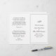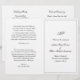 Programa de Casamento dobrado ao estilo tradicional com um simples design em preto e branco clássico com seu monograma no topo junto com seus detalhes de casamento cercados por uma fronteira. Todo texto está em um script elegante e pode ser alterado para qualquer cor que você desejar clicando no botão "personalizar". Estes Programas de Casamento dobrados com design de eterno são perfeitos para um casamento formal e são impressos em folhas de papel para uma opção econômica.