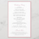 Simples programa de casamento orçamentário com uma borda fina junto com seus nomes e cabeçalhos em um roteiro elegante em cor-de-rosa empoeirado. O esquema clássico e tradicional faz esta design excelente para um casamento formal. Estes programas de casamento baratos são impressos em folhas de papel para uma opção econômica.