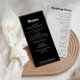 Este programa de casamento preto elegante e minimalista é perfeito para um casamento rústico. O design apresenta uma bela fonte em um fundo preto para embelezar seu evento.