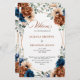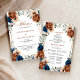 Elegante azul-Marinho, Terracotta, programa de casamento do tema floral da Terra-Laranja com buquê elegante de azul-Marinho, rosas de cor Terracotta e folhas verdes de eucalipto. Entre em contato comigo para obter ajuda sobre a personalização ou se você precisar de outro produto com este design.