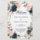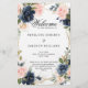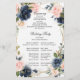 Programa de casamentos geométricos florais azuis-marinhos-escuros, com buquê elegante de azul-marinho, azul-real, branco, rosa e eucalipto verde-sábio e elegante quadro neutro geométrico com brilho. Entre em contato comigo para obter ajuda sobre a personalização ou se você precisar de outro produto com este design.