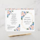 Estes programas de casamento apresentam um design floral de aquarela com flores cor-de-rosa azuis e pinceladas, folhagem de eucalipto e uma falsa estrutura geométrica de ouro. Você precisará dobrá-los ao meio. Personalize com seu texto. Produtos correspondentes disponíveis.