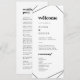 Este programa de casamento geométrico é perfeito para um casamento simples. O clássico design apresenta diamante geométrico boêmico e formas de triângulo e tipografia bóstica com um toque industrial moderno. Inclua o nome da noiva e do noivo, a data e o local do casamento, a mensagem do obrigado, a ordem do serviço, a festa noiva e um memorial "em memória amorosa" opcional.